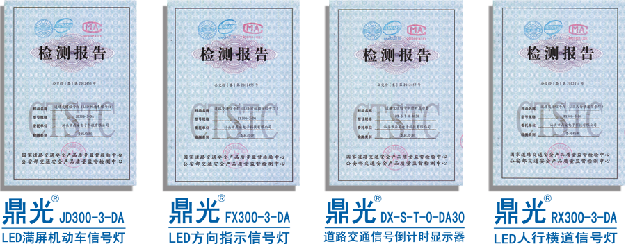 鼎光 交通信號(hào)燈符合《GB14887-2011道路交通信號(hào)燈》標(biāo)準(zhǔn),并且通過(guò)公安部交通安全產(chǎn)品質(zhì)量監(jiān)督檢 測(cè)中心檢測(cè)(最新檢測(cè)公交檢【委】第2012453-57號(hào)),生產(chǎn)、服務(wù)通過(guò)ISO9001國(guó)際質(zhì)量體系認(rèn)證。